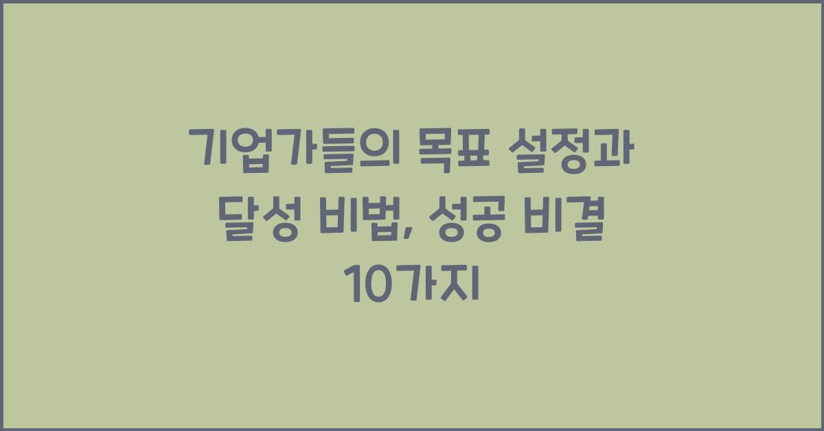기업가들의 목표 설정과 달성 비법은 잘 정리된 계획, 실행, 피드백, 그리고 지속적인 자기 계발로 요약될 수 있습니다. 이런 비법들이 결합하여 자신만의 성공적인 경로를 만들어가는 것이죠. 성공적인 기업가가 되기를 원한다면 목표 설정 과정에서 자신의 마음을 잊지 말고, 진솔하게 접근하는 것이 중요합니다.