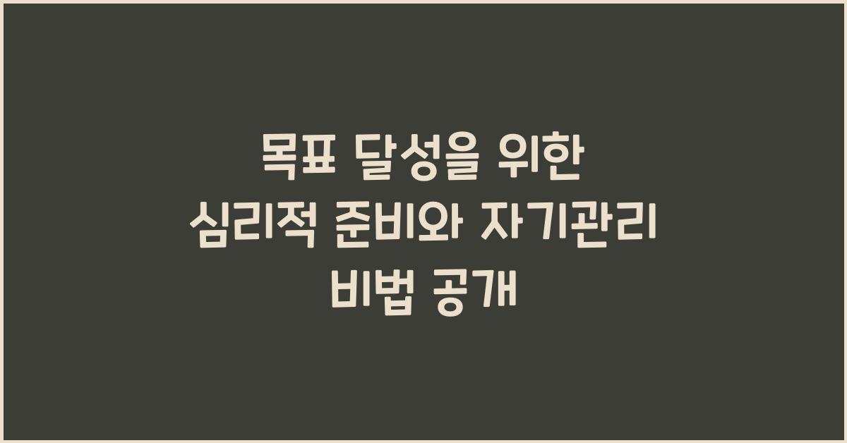 목표 달성을 위한 심리적 준비는 감정 관리와 부정적인 생각을 견디는 연습을 포함합니다. 명상이나 긍정적인 자기 대화가 큰 도움이 될 수 있습니다.