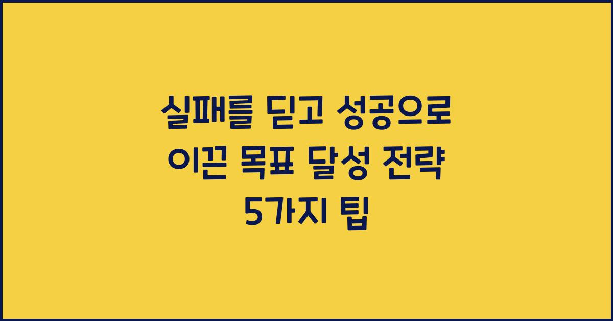 우리는 실패할 때마다 마음이 아파온 경험이 많습니다. 하지만 이러한 실패는 그대로 두기에는 너무도 아까운 자산입니다. 실패를 딛고 성공으로 이끈 목표 달성 전략에서 가장 중요한 것은, 실패를 어떻게 받아들이고 활용하느냐입니다. 이를 통해 우리는 더욱 성장할 수 있습니다.