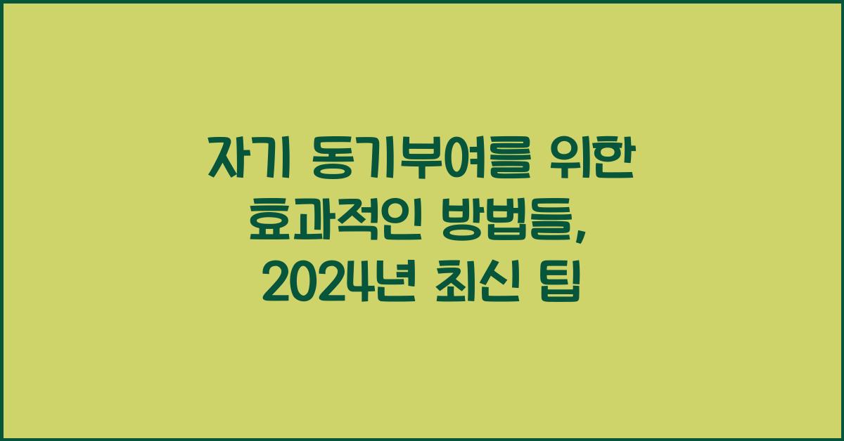 우리 삶에서 자기 동기부여는 큰 역할을 합니다. 때때로 우리는 목표를 세우고 도전하지만, 필요한 에너지를 찾기 어려워지곤 합니다. 이런 순간에 자기 동기부여를 위한 효과적인 방법들을 알게 되면 상황이 달라질 수 있습니다. 삶의 여러 측면에서 자신을 자극하고 이끌어주는 힘은 아주 소중합니다.