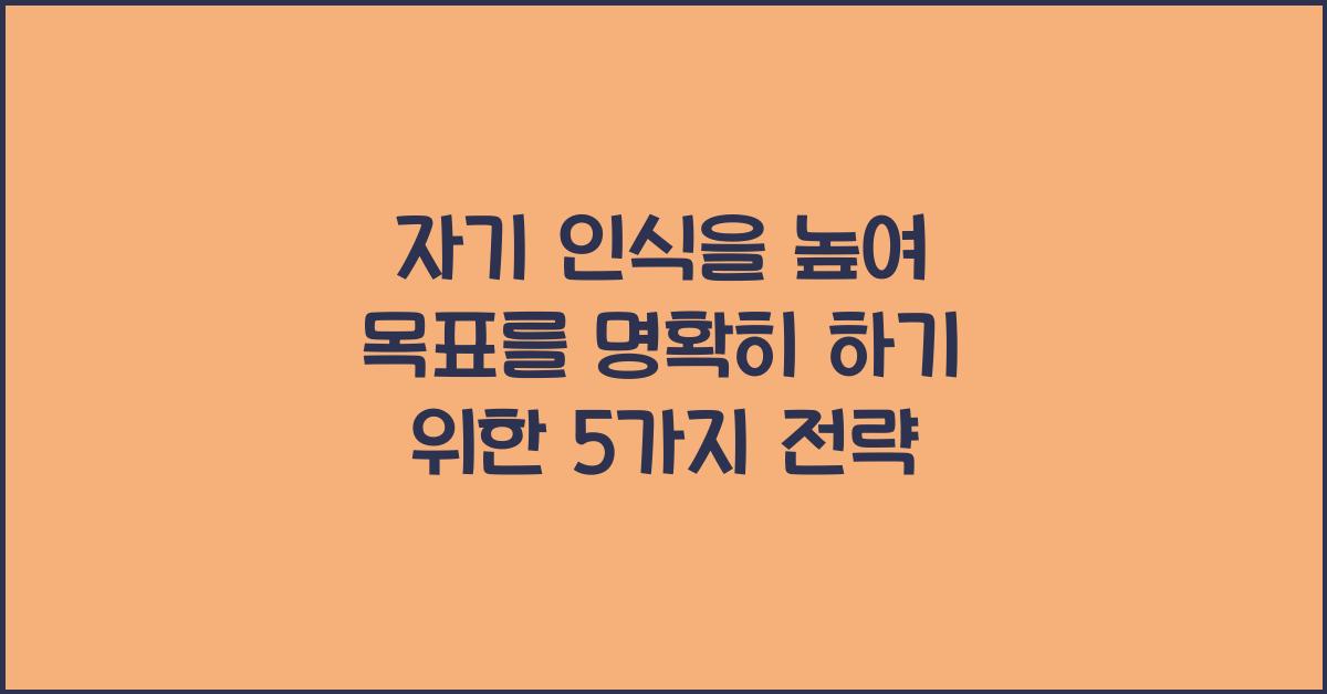 자기 인식은 목표를 세우고 달성하기 위한 첫걸음입니다. 우리는 자신의 감정, 강점, 약점을 인식할 때 더 확고한 목표를 설정할 수 있습니다. 자기 인식을 높여 목표를 명확히 하기 위해서는 이러한 인식이 뼈대가 되어야 합니다. 이 글에서는 실용적이고 쉽게 접근할 수 있는 5가지 전략을 제시할 것입니다.