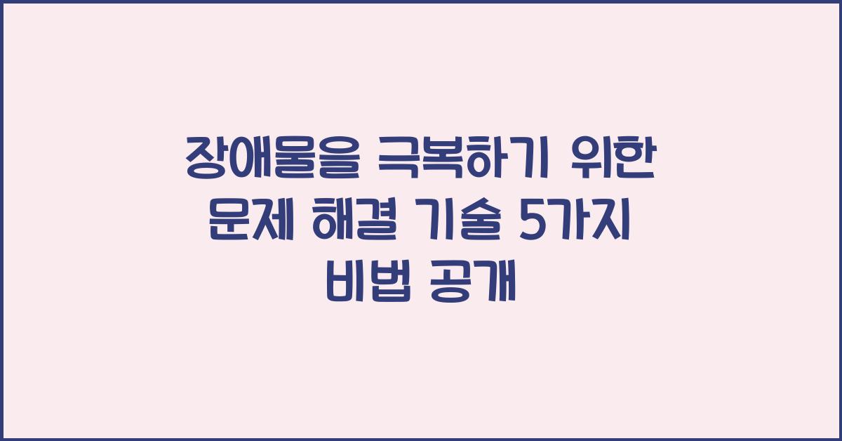 장애물을 극복하기 위한 문제 해결 기술의 중요성